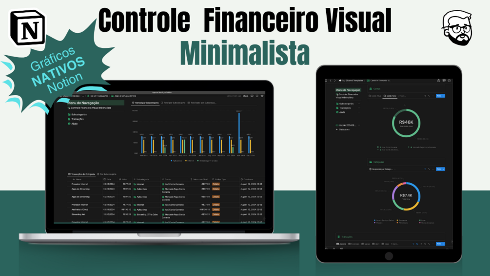 Controle Financeiro Visual Minimalista - Gráficos Nativos Notion